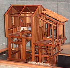 14. Sawmill ModelThis scale model is displayed in the New Salem Visitor Center. By viewing the inside, you can see the type of structure where Lincoln worked while employed by Denton Offutt. Dr. Jason Duncan, a Vermont native who practiced medicine in the village, recalled seeing Lincoln working in the mill.He said that when he first met him, Abraham Lincoln "used to unload Sacks of wheat from farmers wagons, measure out and settle with them for the same, this I believe he followed as long as Offit continued proprietor of the Mill." <Click on picture to continue. Back to Tour Home |